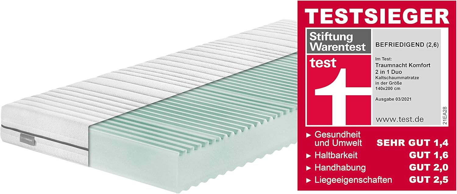 *die matratze beco vision top wurde von stiftung warentest in der heftausgabe 04/2020 geprüft und mit gesamturteil »gut« (2,5) bewertet ( in der größe 90×200 cm, h3).
